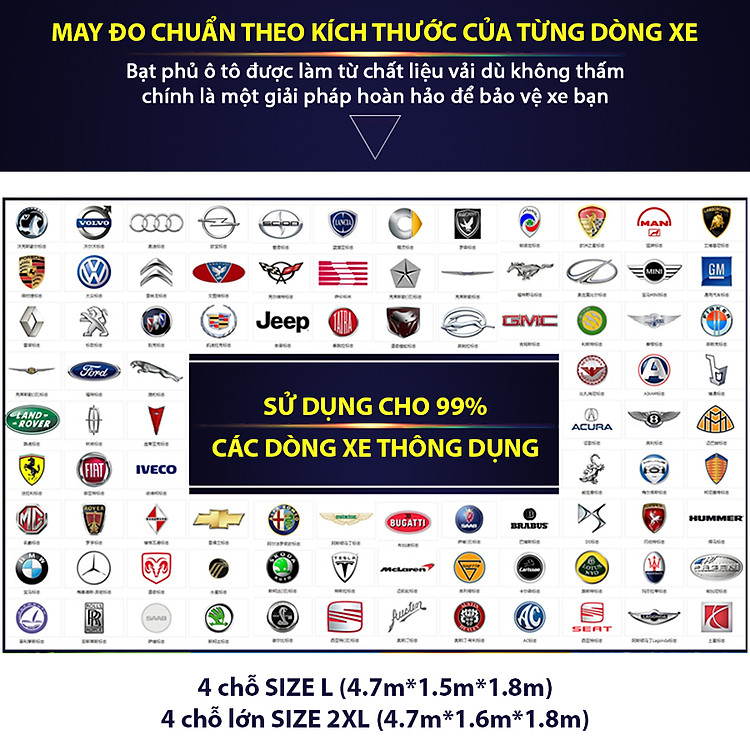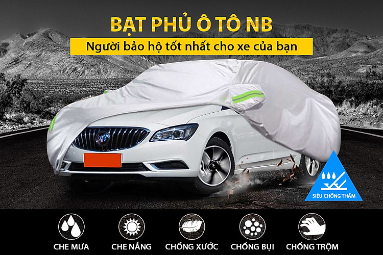 - Bạt phủ ô tô NB loại dày chống thấm nước 4 chỗ lớn size 2XL được làm từ chất liệu vải dù không thấm chính là một giải pháp hoàn hảo để bảo vệ xe bạn. Đường chỉ viền được may tỉ mỉ, đẹp mắt, bền bỉ lâu dài với thời gian. Đây chắc chắn sẽ là lựa chọn tuyệt vời nhất góp phần bảo vệ ngôi nhà di động của bạn an toàn hơn, và luôn giữ được vẻ sáng bóng của sơn.