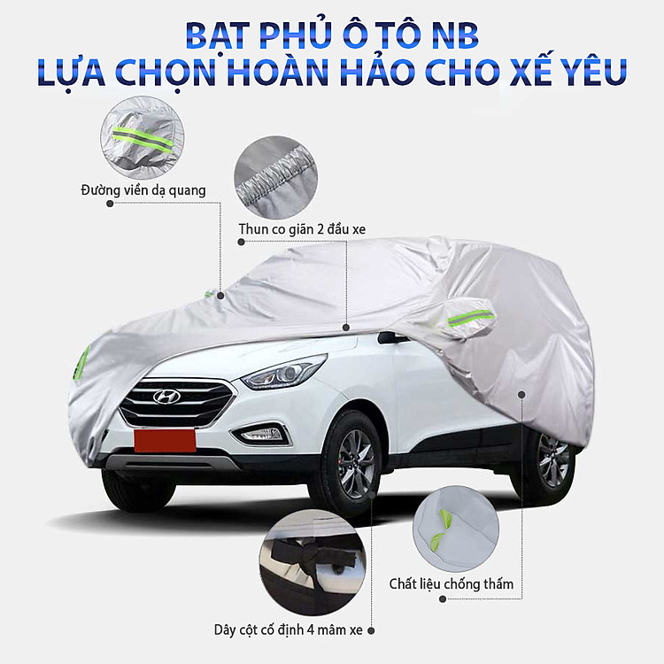 - Bạt phủ ô tô NB loại dày chống thấm nước 7 chỗ lớn size YXL được làm từ chất liệu vải dù không thấm chính là một giải pháp hoàn hảo để bảo vệ xe bạn. Đường chỉ viền được may tỉ mỉ, đẹp mắt, bền bỉ lâu dài với thời gian. Đây chắc chắn sẽ là lựa chọn tuyệt vời nhất góp phần bảo vệ ngôi nhà di động của bạn an toàn hơn, và luôn giữ được vẻ sáng bóng của sơn.