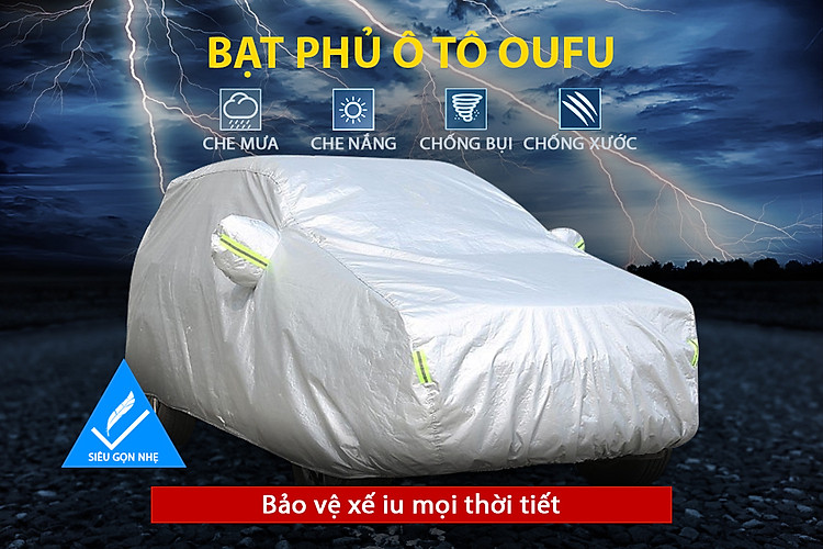- Bạt phủ ô tô OUFU 7 chỗ lớn size YXL được làm từ chất liệu vải dù không thấm chính là một giải pháp hoàn hảo để bảo vệ xe bạn. Đường chỉ viền được may tỉ mỉ, đẹp mắt, bền bỉ lâu dài với thời gian. Đây chắc chắn sẽ là lựa chọn tuyệt vời nhất góp phần bảo vệ ngôi nhà di động của bạn an toàn hơn, và luôn giữ được vẻ sáng bóng của sơn.