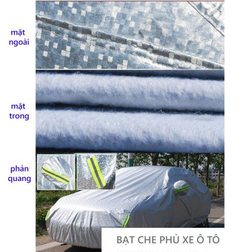 - Lớp bên ngoài tráng nhôm cách nhiệt caro, bên trong phủ lớp bông mềm để chống xước xe.