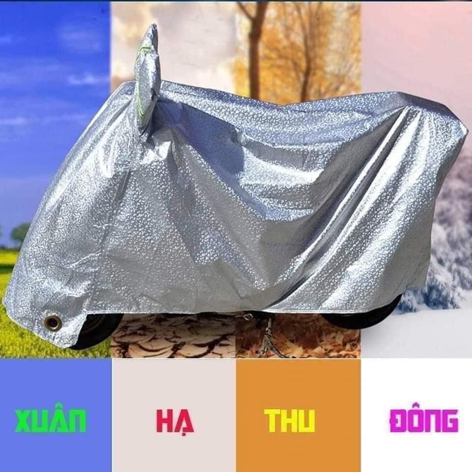 BẠT PHỦ XE MÁY PHẢN QUANG TRÁNG NHÔM CÁCH NHIỆT CAO CẤP, BẠT PHỦ XE MÁY BỐN MÙA - HÀNG CHÍNH HÃNGBạt phủ bạc trùm che chắn nắng xe máy vải cao cấp phản quang chống mưa bụi bẩn chống thấm mọi loại...