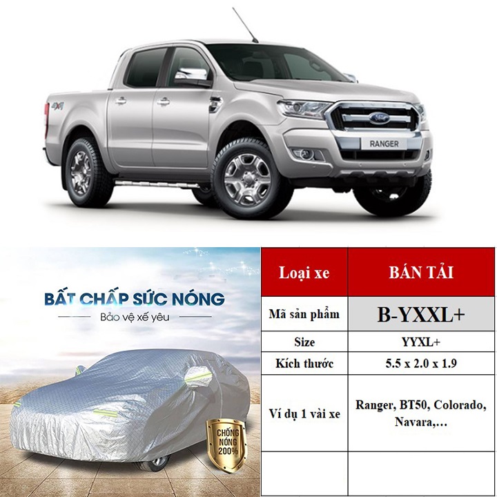 Chất liệu | Vải cao cấp 2 mặt dầy dặn, lớp ngoài tráng nhôm cao cấp giúp phản chiếu nắng và cách nhiệt. Lớp trong là lớp nỉ cao cấp chống xước bảo vệ lớp sơn của xe. |
