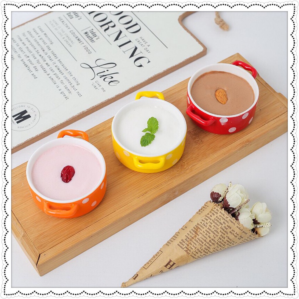 Giới thiệu Bát sứ ăn dặm 2 quai chấm bi cho bé ăn dặm 100ml