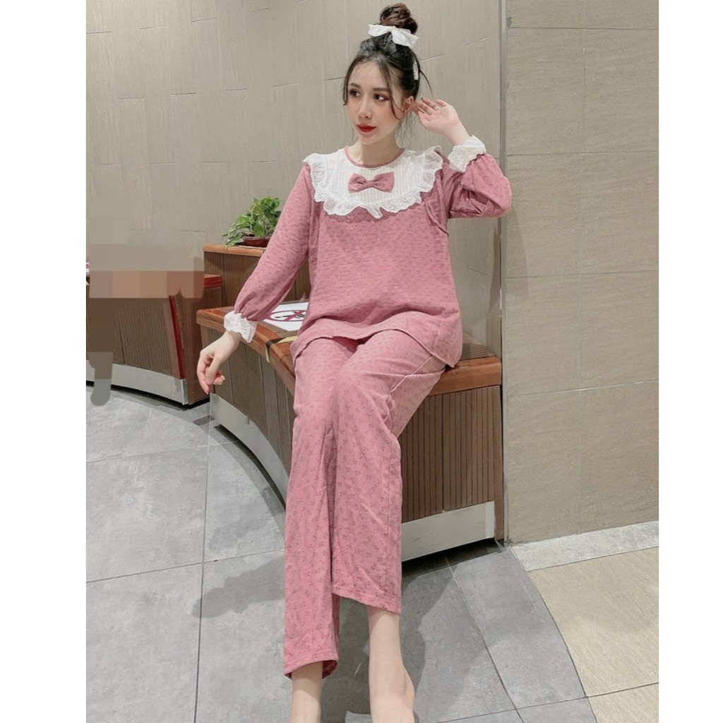 Giới thiệu Bộ bầu dài tay thu đông thiết kế cổ ren tiểu thư siêu xinh mặc bầu và sau sinh
