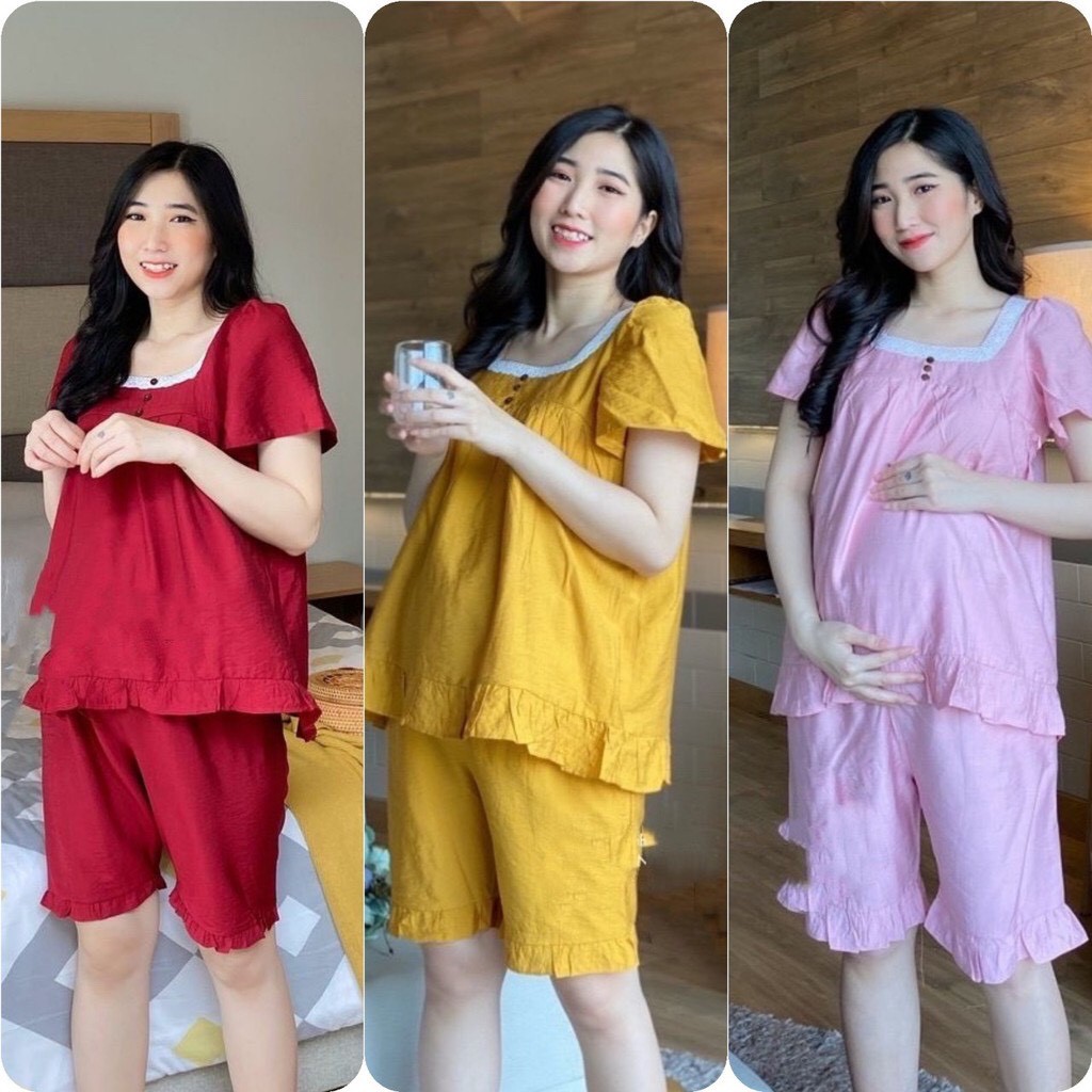 Quần bầu lửng có chun chỉnh để các mom thoải mái theo tháng thai kỳ Bộ đồ bầu lửng chất đũi lụa mặc siêu mát mẻ mùa hè Đồ bộ freesize cho các mom từ 40-65kg Bộ đồ bầu có nhiều màu sắc đẹp, tươi sáng