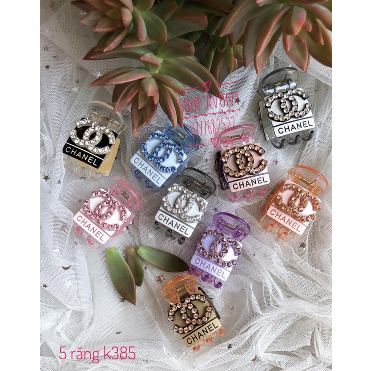 - Dạng kẹp 3 chấu đính mica chan-nel nổi đính hạt trắng