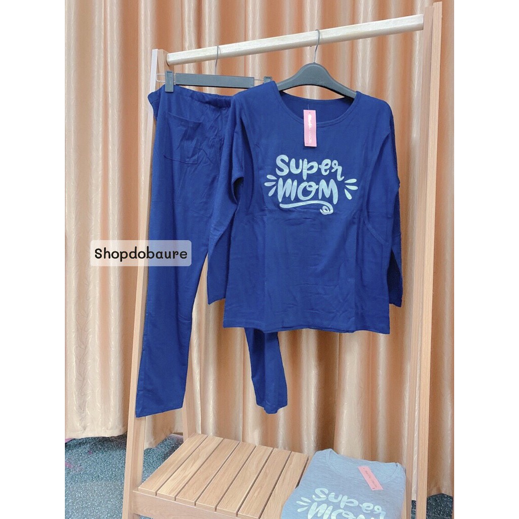 Bộ bầu và sau sinh Dài Tay Supper Mom, vén cho con bú Thu Đông, chất cotton mềm mịn siêu thấm hút mồ hôi - 𝐁𝐃𝟑𝟏