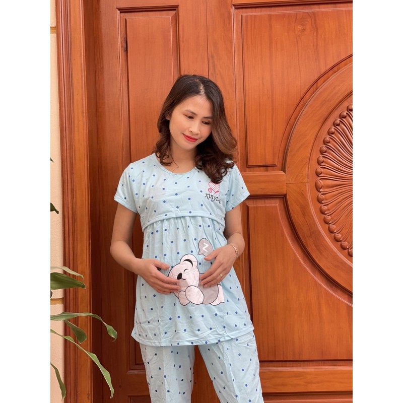 Giới thiệu Bộ bầu và sau sinh GẤU LỬNG lật ti, chất cotton cho mẹ bầu mặc nhà và cho con bú mùa hè