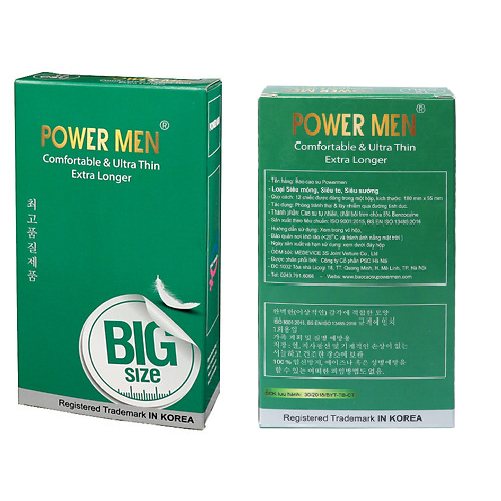 Bao cao su cỡ lớn chống xuất tinh sớm Power Men Comfortable Ultrathin Extra Longer dành cho các quý ông “ngoại cỡ”, truyền nhiệt tốt mang lại cảm xúc chân thật, 100% chất liệu cao su thiên nhiên, không kích ứng. Nhiều gel bôi trơn, chứa 5% Benzocain giúp kéo dài thời gian cuộc yêu, khẳng định bản lĩnh của chàng. Giúp hỗ trợ độ ẩm tự nhiên cho ad phụ nữ và tình trạng đau rát khi “lâm trận”