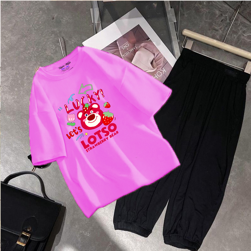 BỘ Quần áo bé gái Sét gấu dâu LOT.SO quần đùi có túi kèm áo thun form rộng cao cấp cho bé size đại 25-45kg Set bộ gấu dâu hồng cho bé gái, sét áo gấu dâu đính nơ dễ thương và quần bí ca rô Bộ cotton bé gái rất mát, bộ bé gái đi chơi, bộ ở nhà cho BÉ Đồ bộ bé gái gấu dâu 12 tuổi 40kg,đồ trẻ em bé gái bao gồm sét đồ áo thun bé gái và quần