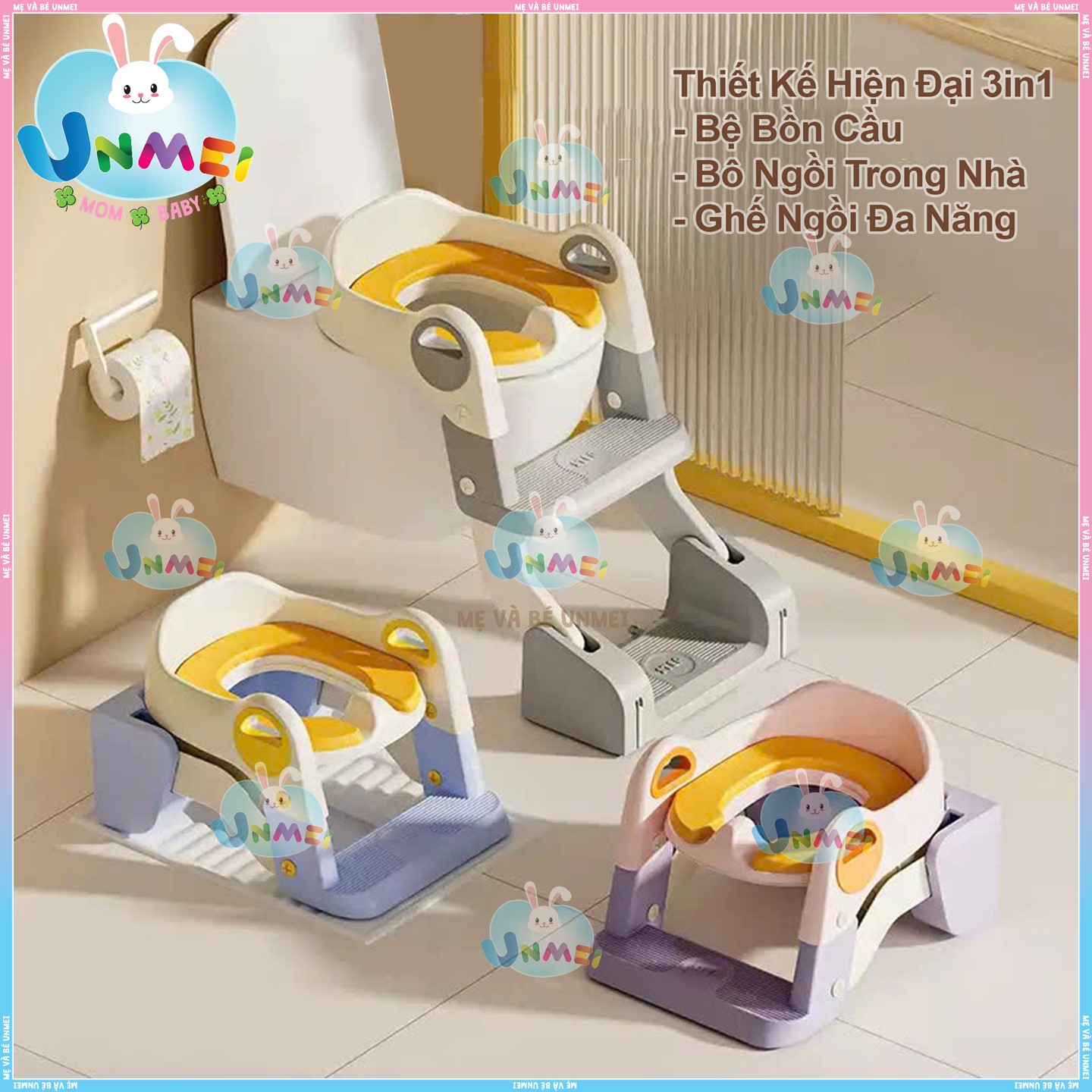 - Bệ Cầu Thang 3in1 với chức năng tháo lắp thay đổi vị trí các phụ kiện có thể phù hợp cho bé sử dụng với nhiều mục đích khác nhau ( thu nhỏ bồn cầu người lớn cho bé ngồi, có kèm theo bô cho bé ngồi toilet trong phòng, có thể làn ghế ngồi cho bé tắm rửa vệ sinh....