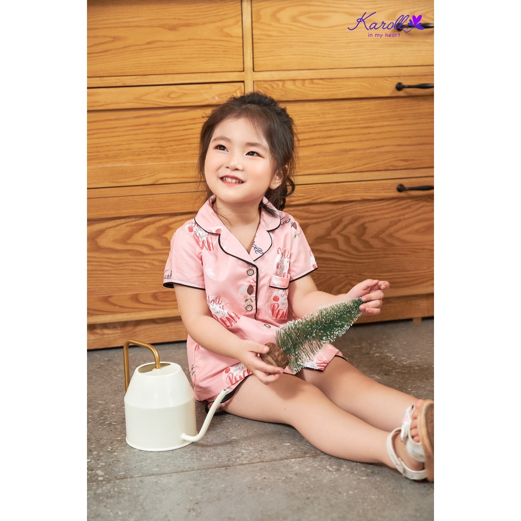 Giới thiệu Đồ bộ bé nữ mặc nhà Jcvcoll - Karoll K21.04.02, chất liệu lụa hình Peach