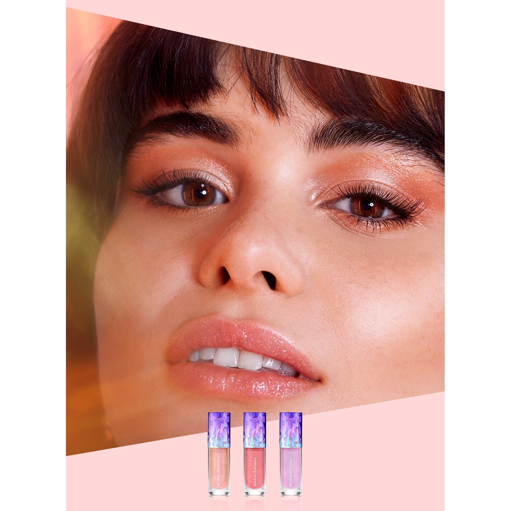 Set son Becca x Barbie Ferreira Prismatica Lip Gloss Kit gồm 3 màu: - Facet: nhũ ánh tím - Foiled: nhũ hồng - Sparkle: nhũ vàng