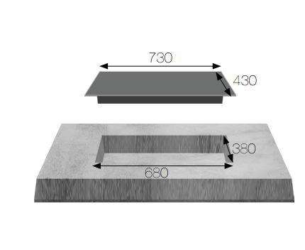| Kích thước lắp đặt | • Kích thước mặt kính: 730x430 mm • Kích thước khoét đá: 680x380 mm |
