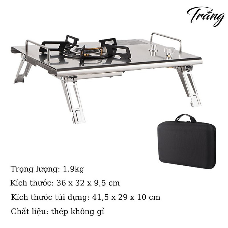 Bếp Gas Glamping Để Bàn làm từ chất liệu chính là thép không gỉ 304, chắc chắn và sạch sẽ. Chỉ nặng 1.9kg, đi kèm túi đựng tiện lợi. Công suất bếp lên tới 4000W, có thể sử dụng khi đi cắm trại, dã ngoại hoặc tại nhà.