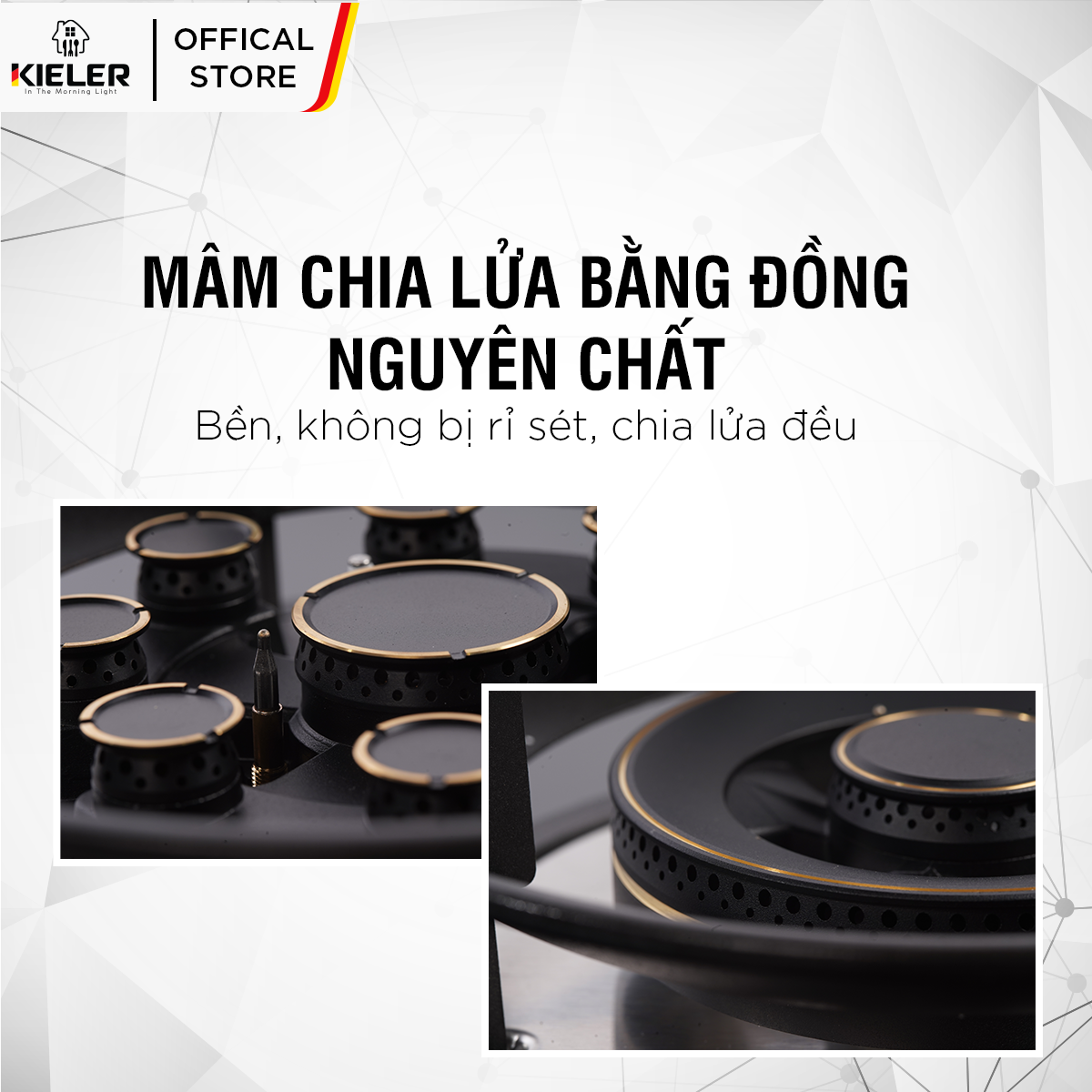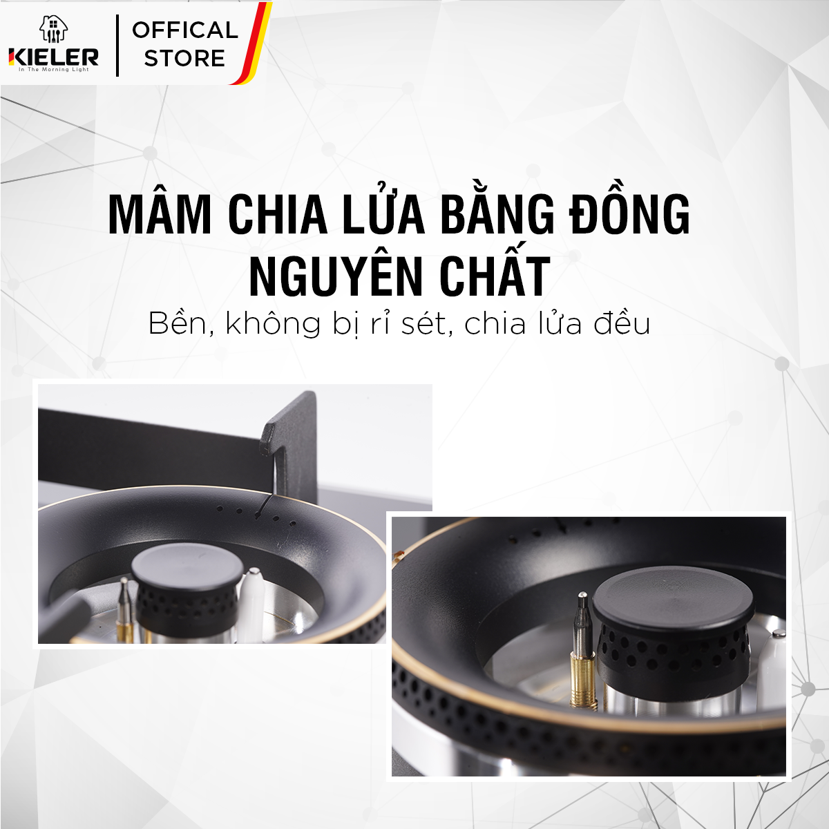 - Họng bếp bằng đồng chống oxy hóa, tăng tuổi thọ bếp