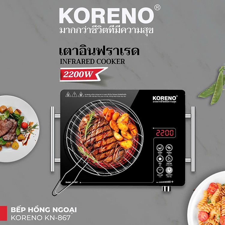 Bếp hồng ngoại Koreno Thái Lan KN-867 công suất 2200W tặng kèm vỉ nướng