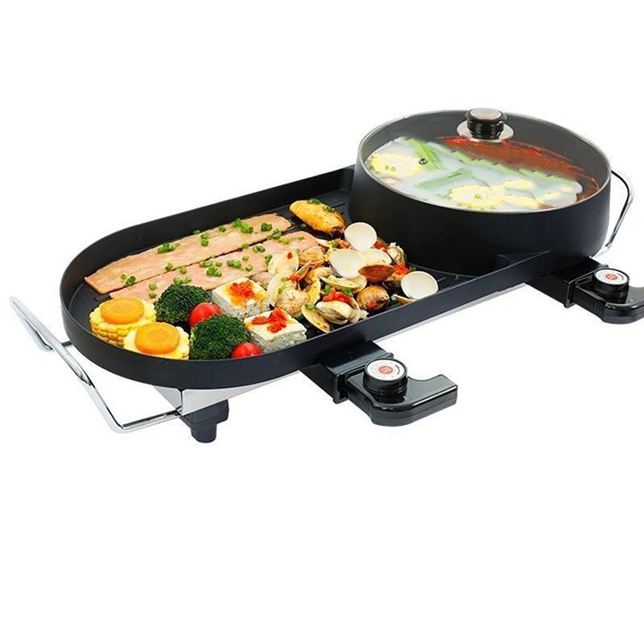 Bếp có thể sử dụng nướng, chiên một cách tiện dụng và nhanh chóng, bếp với diện tích nướng lớn một lúc bạn có thể nướng nhiều món ăn cùng một lúc. - Bếp lẩu nướng có lớp men chống dính cao cấp giúp thức ăn chống dính tốt, không cháy khét. - Bên cạnh nướng bếp còn kết hợp với việc nấu lẩu giúp bạn có thể cùng lúc vừa nướng và nấu lẩu cùng lúc vô cùng tiện lợi. - Bếp nướng có tới 2 dây nguồn riêng, giúp bạn điều chỉnh nhiệt độ nướng hoặc nhiệt độ nấu lẩu dễ dàng - Bếp tay xách chống nóng, giúp bạn có thể dể dàng di chuyển bếp mọi lúc mọi nơi. - Sản phẩm được thiết kế an toàn, chống rò rỉ điện. - Vệ sinh dễ dàng bằng khăn ẩm - Tiết kiệm điện với 2 núm điều chỉnh nhiệt độ cho nồi lẩu và bếp nướng - Không tạo ra khói làm đen nhà và cay mắt. Mọi thành viên yên tâm quây quần cùng nướng và thưởng thức món ăn. - Diện tích vỉ nướng lớn hơn nên có thể nướng được nhiều món ăn khác nhau cùng một lúc. - Hãy để lại thông tin để shop có thể tư vấn cụ thể hơn về sản phẩm này cho mọi người nhé ! Bếp Lẩu Nướng 2 trong 1 đa năng tiện dụng THÔNG SỐ SẢN PHẨM 💦Công suất: 1800W 💦Điện áp: 220V-50Hz 💦Nhiệt độ điều chỉnh: 0~240 độC 💦Phù hợp: 6 - 10 người 💦Xuất xứ: Thái Lan 💦Bảo hành: 12 tháng 💦Điều chỉnh lẩu nướng riêng biệt ================================================================