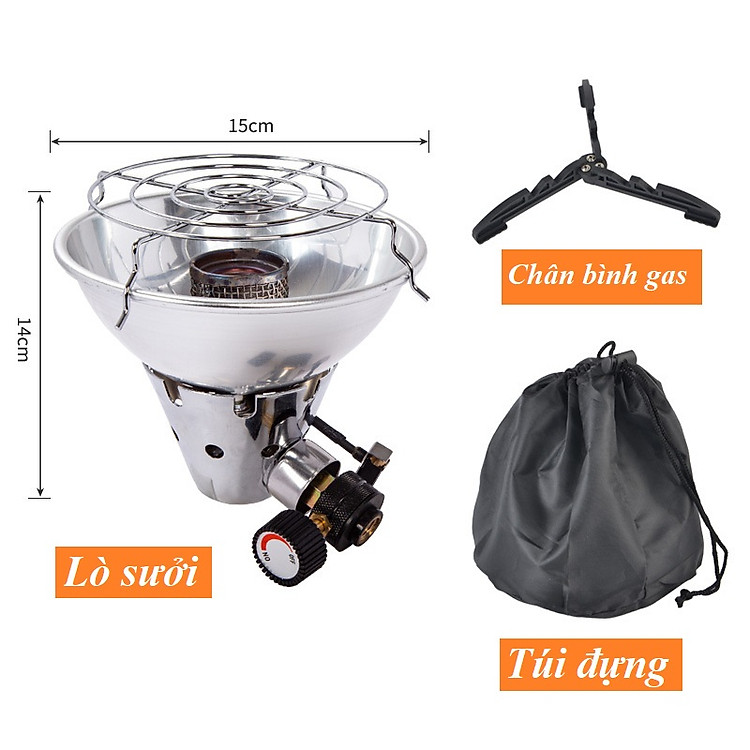 Gói hàng bao gồm: 1 x lò sưởi ,1 x Đế bình gas ,1 x Túi lưu trữ (Không kèm bình gas)