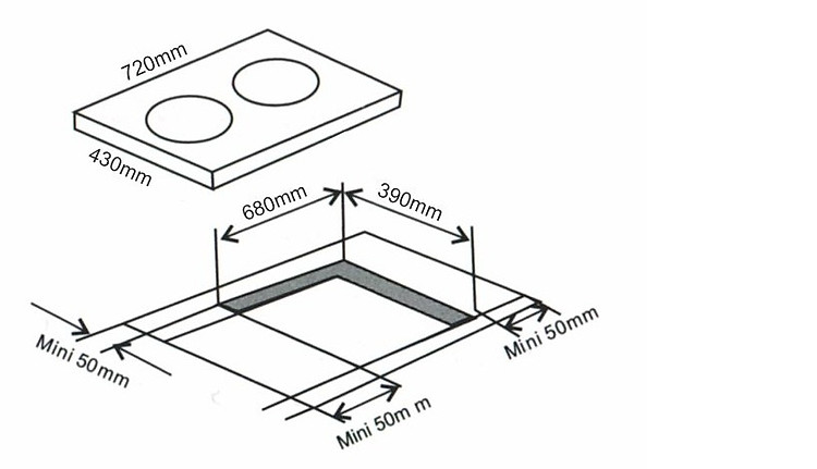 | Kích thước lắp đặt | Kích thước khoét lỗ: 680 x 390mm |