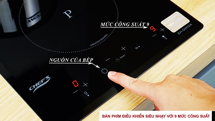 Các mức công suất của bếp được điều chỉnh bằng các phím điều khiển riêng biệt cho 2 vùng nấu. Điều khiển cảm ứng bấm, điều chỉnh 9 mức công suất từ thấp đến cao (1-9) + booster. Phím điều khiển siêu nhạy, dễ dàng sử dụng kể cả khi tay ướt.