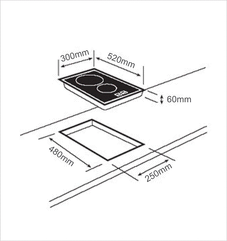 Bếp được thiết kế dáng dọc độc đáo, kích thước 300x520 mm, nhỏ gọn, tạo điểm nhấn cho những gian bếp nhỏ.