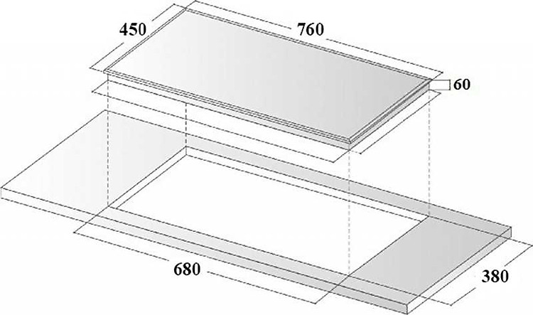 | Kích thước lắp đặt | 680R x 380S (mm) |