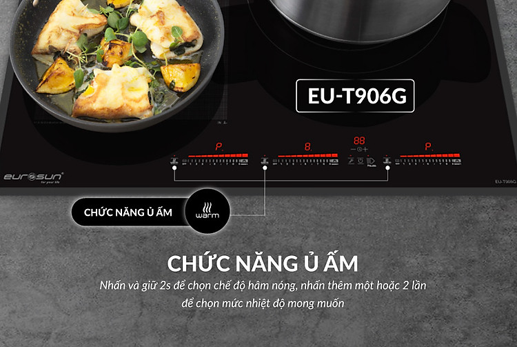 Với công nghệ biến tần INVERTER vượt trội, bếp từ Eurosun EU-T906G có khả năng ủ ấm ở 3 mức nhiệt độ theo ý muốn, chức năng ủ ấm được lập trình giữ mức nhiệt độ ổn định ở các mức 65-75-85ºC giúp chúng ta duy trì nhiệt cho thức ăn luôn nóng, ấm mà không bị nguội đi phải đun lại nhiều lần làm giảm dinh dưỡng trong thức ăn, đặc biệt về mùa đông thời tiết lạnh giá.