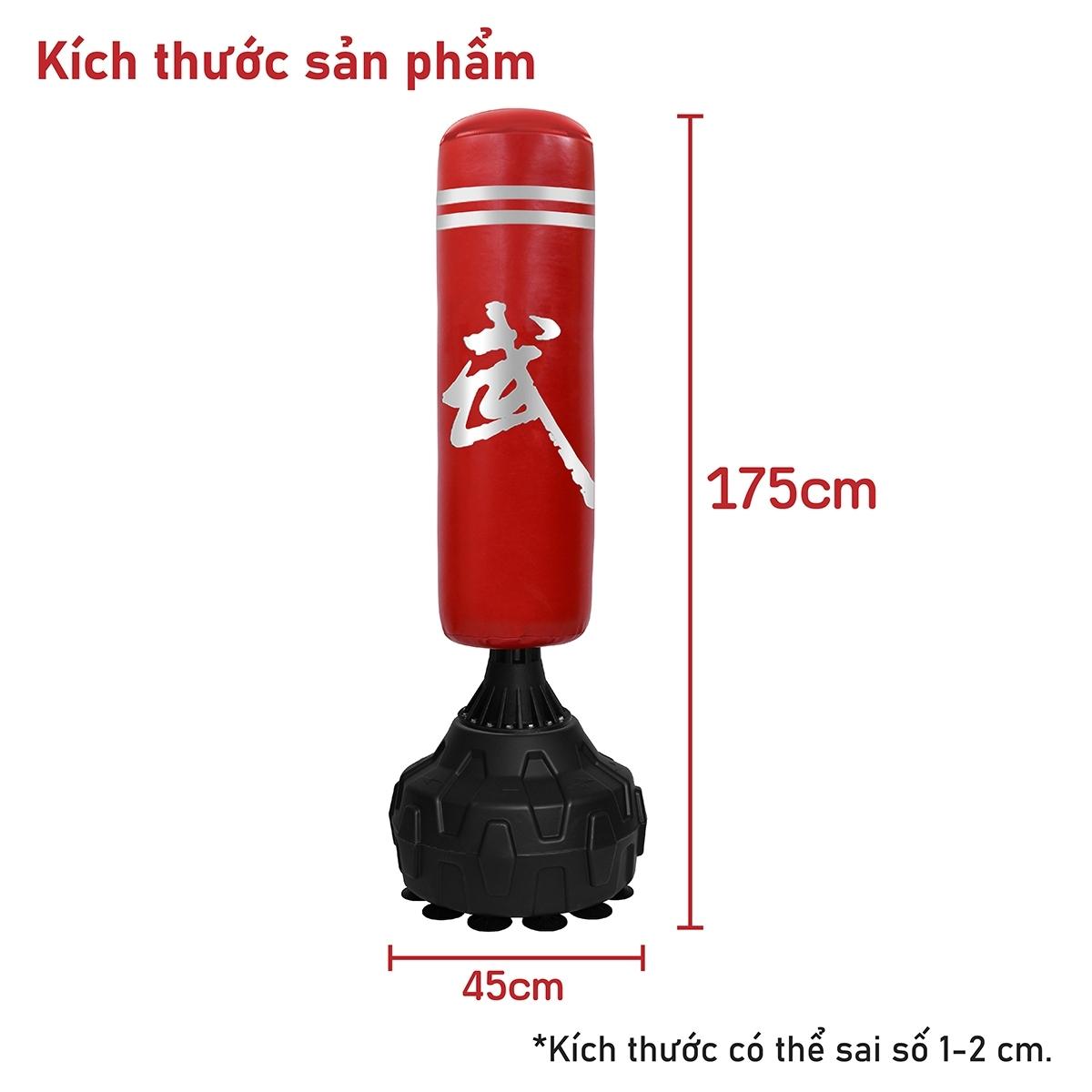 Trụ đấm bốc tự cân bằng được làm từ Chất liệu nhựa PVC giả da công nghiệp Bền chắc, đàn hồi cực tốt, độ dày vừa phải.