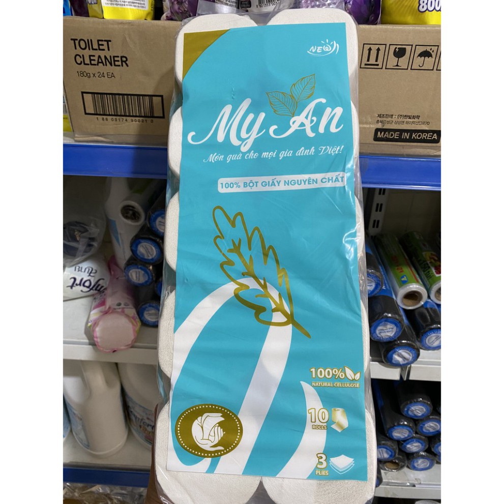 Bịch 10 cuộn giấy vệ sinh My An không lõi 3 lớp bột giấy nguyên chất 100%