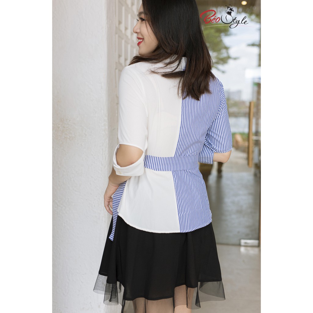 BIGSIZE áo sơ mi kiểu công sở AKBS011 Béo Style cho người béo mập 55-100kg - Phù hợp đi tiệc, công sở hoặc đi chơi - Phù hợp đi làm công sở hoặc phối đi chơi, đi tiệc. * Dài áo 60 - 62 - 64 - 66 * Chất vải: kate lụa phối xốp gạo. Vải thấm hút mồ hôi tốt, co dãn nhẹ * Áo kiểu sơ mi mặc chui đầu, có dây thắt eo