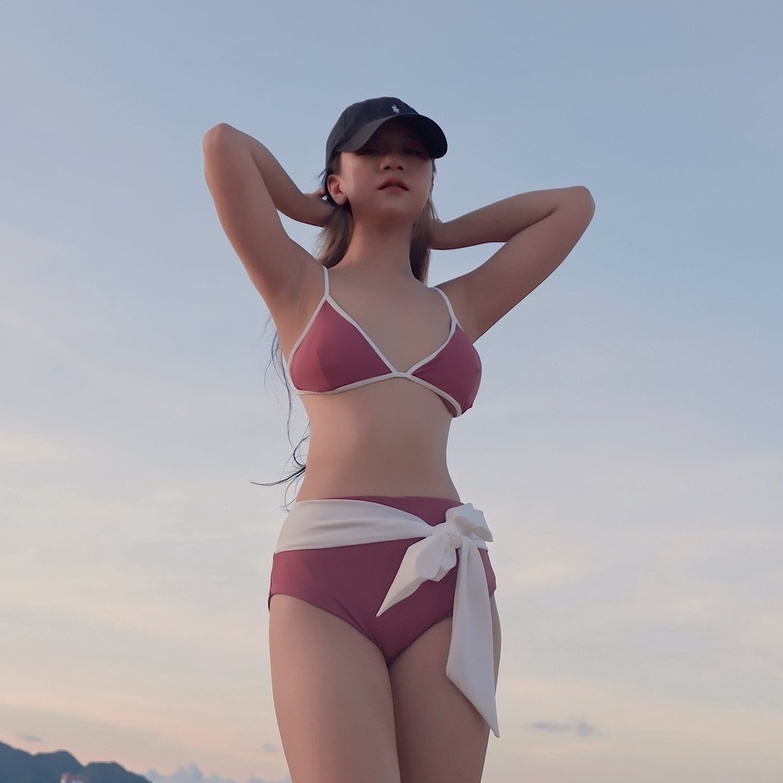 Giới thiệu Bikini 2 mảnh thiêt kế LILAS BLANC - Bondi swimsuit, Bộ bơi 2 mảnh phối viền, thắt nơ cực xinh
