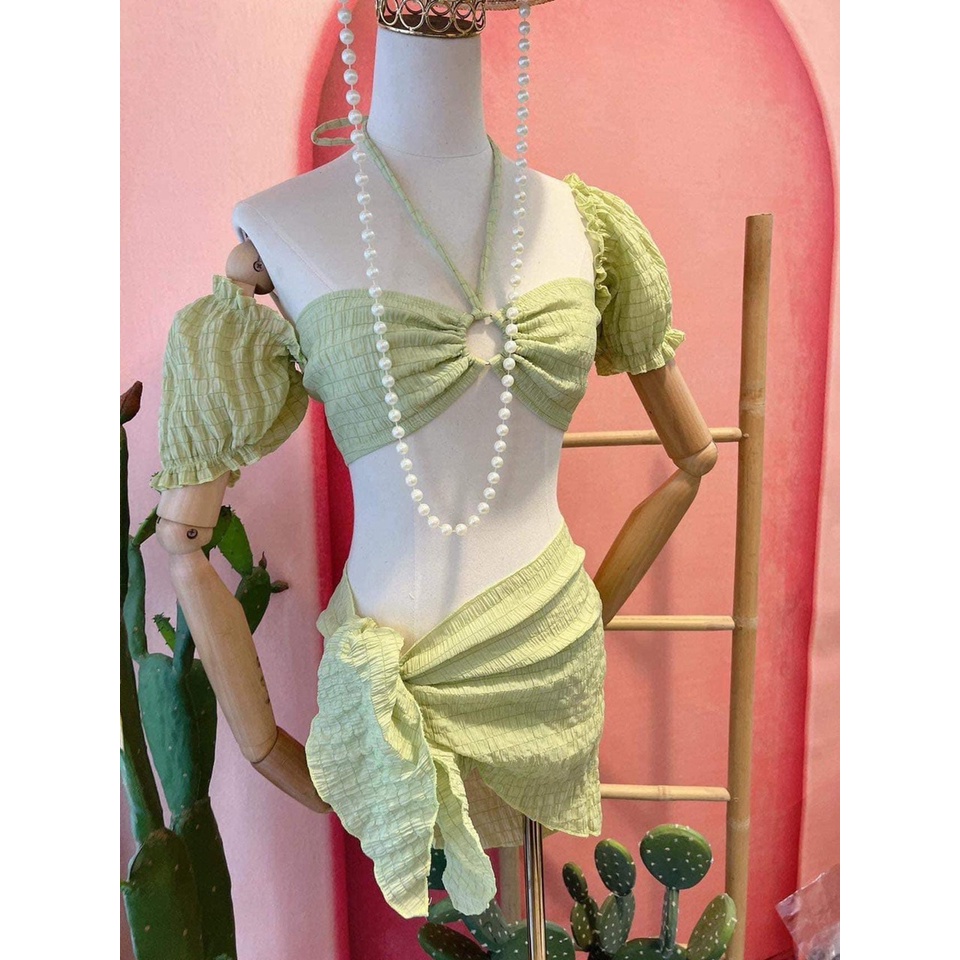 Giới thiệu BIkini 3 mảnh nữ, đồ bơi nữ đi biển áo trễ vai tay bồng quần chip khăn buộc chất thun xốp mềm, bikini191