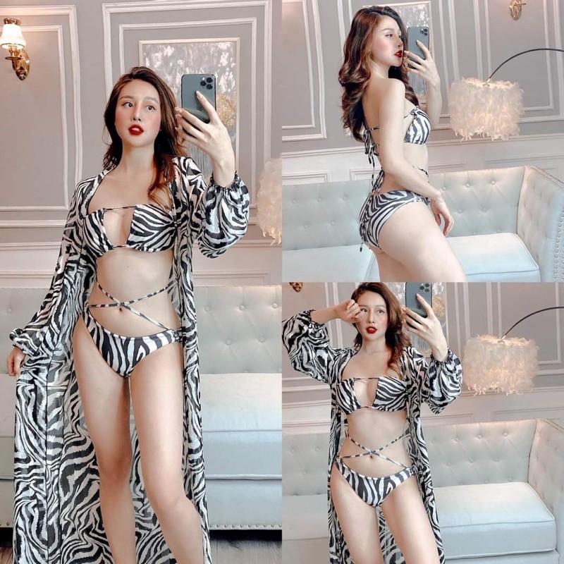 Với thiết kế tam giác thắt dây nên gầy mập mặc đều ok hết nhé Set hot 2021 Set bikini + khoác ✔️Giá lẻ: 299k 🔺Sỉ ib ✔️Size: freesize từ 40-55kg tùy chiều cao ✔️Chất liệu: thun lạnh co giãn 4 chiều