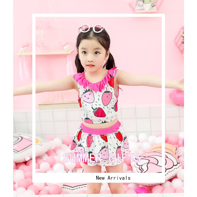 Thời trang trẻ em & trẻ sơ sinh > Quần áo bé gái > Đồ bơi || BIKINI dâu tây phối cổ chân váy 2 tầng