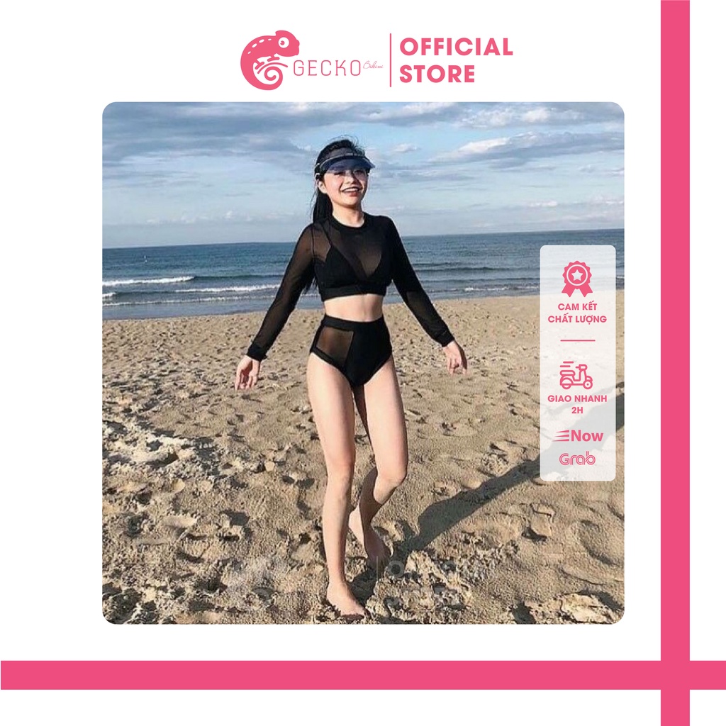 Bikini Đồ Bơi 2 Mảnh Tay Dài Lưới Đen GK0241 (Ảnh Thật)