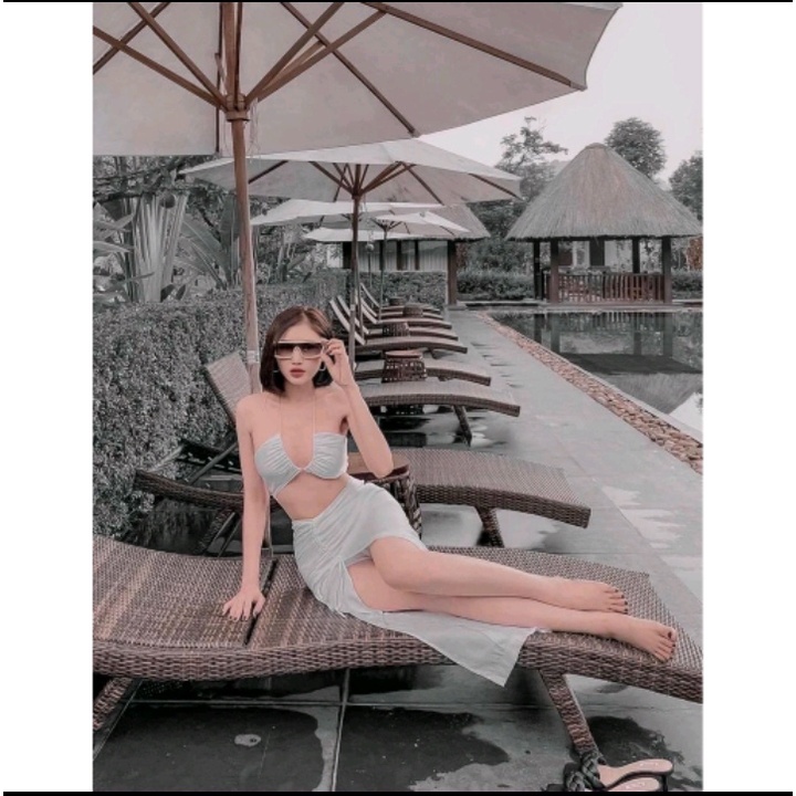 - Bikini đồ bơi sét 3 món đi biển được thiết kế đơn giản mà thanh lịch, với sự đồng nhất về màu sắc và họa tiết.