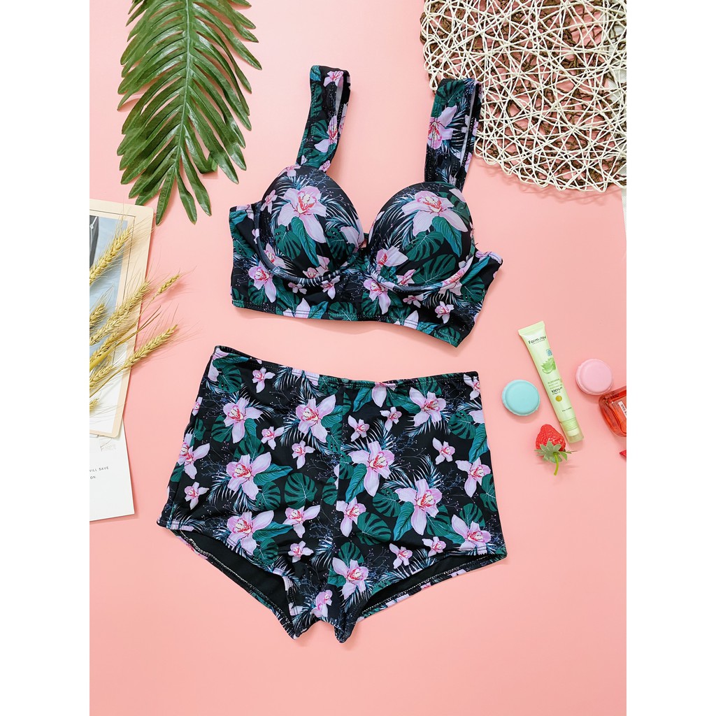 Giới thiệu Bikini hai mảnh họa tiêt hoa bản to lá mặc đi biển đi bơi- Nhiều họa tiết