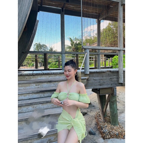 Giới thiệu Bikini Tay Phồng Công Chúa, Set 3 Món Kèm Khăn Quấn xinh xắn (hình thật)