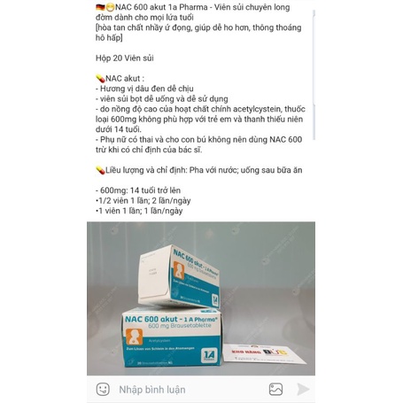 Thực phẩm và đồ uống > Nhu yếu phẩm > Thực phẩm đóng hộp > Khác || Bill Đức Hộp Viên Sủi NAC 600 AKUR 1A PHARMA 20V(00562761)