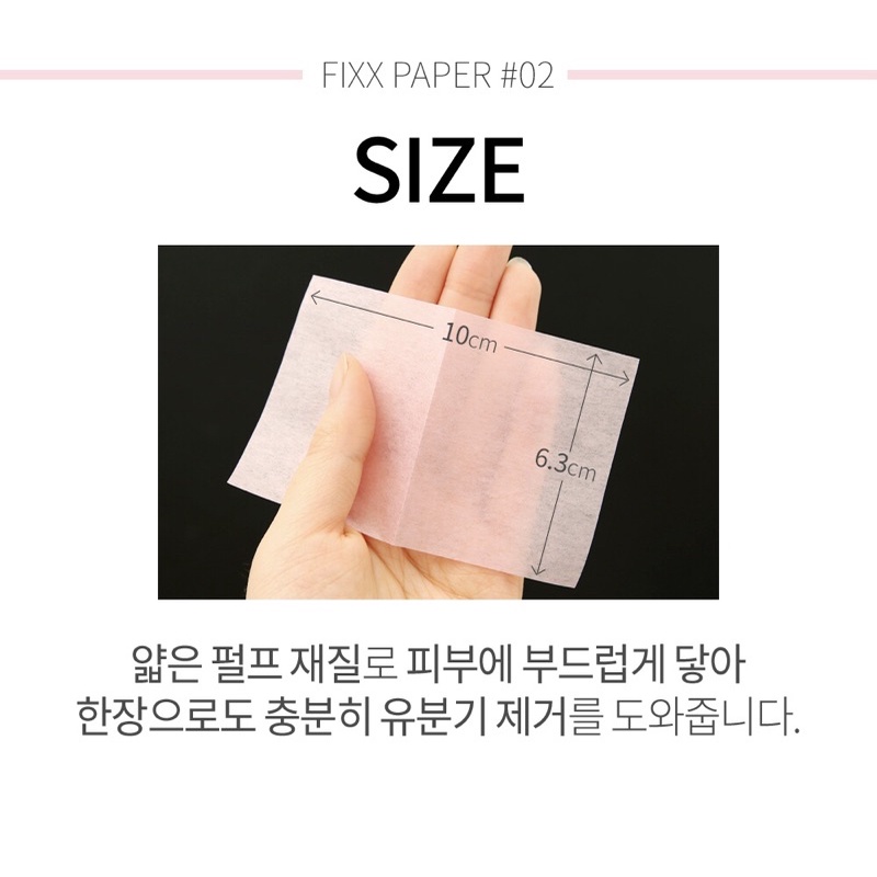Thông tin sản phẩm ⭐️ Giấy thấm dầu Fixx Oil Cut Paper có kích thước to gấp đôi kích thước thường thấy ở các loại giấy thấm dầu khác (10 x 6.3cm)