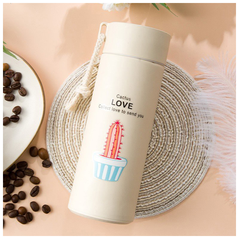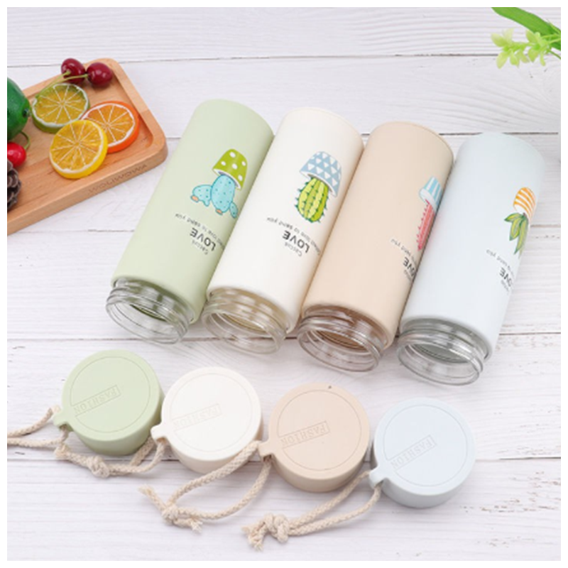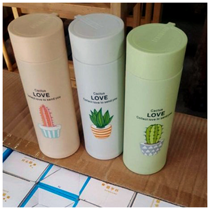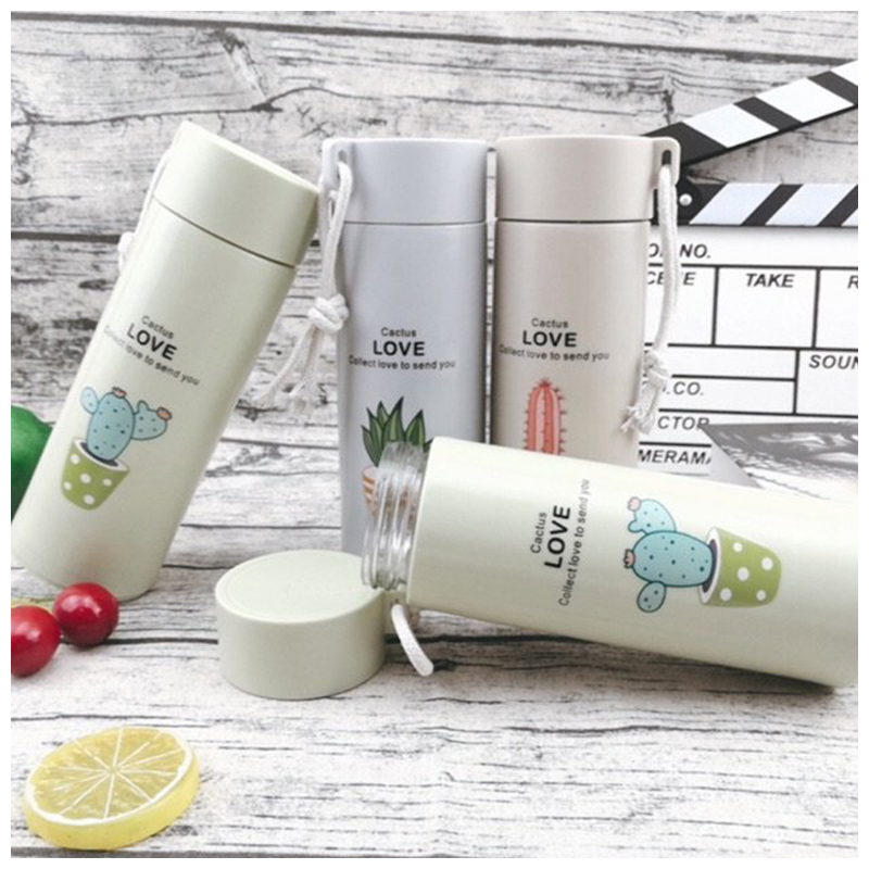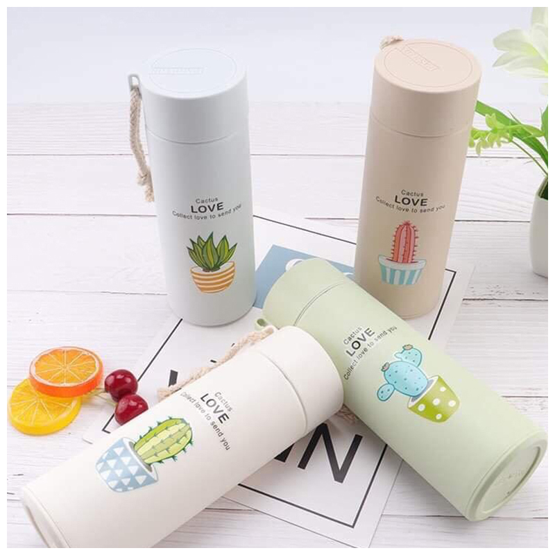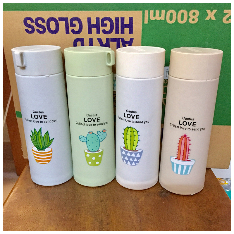 Bình đựng nước lõi thủy tinh họa tiết xương rồng dễ thương dung tích 400ml