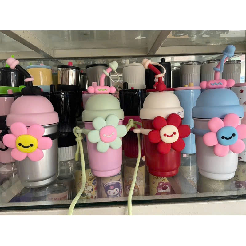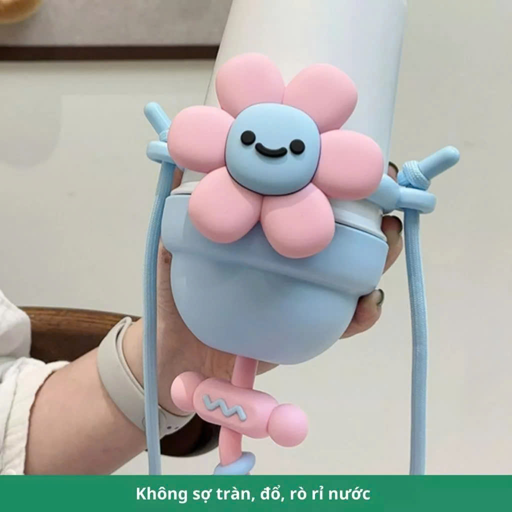 Thiết kế: Họa tiết bông hoa cute, kèm dây đeo chắc chắn, ống hút tiện lợi.