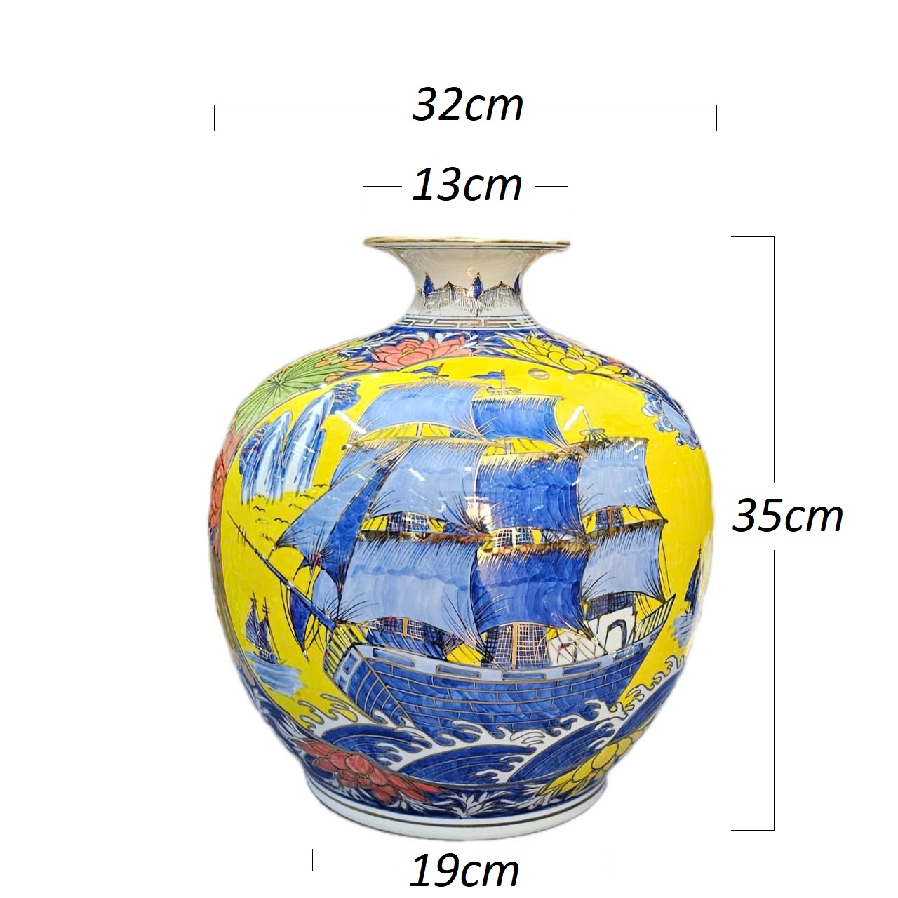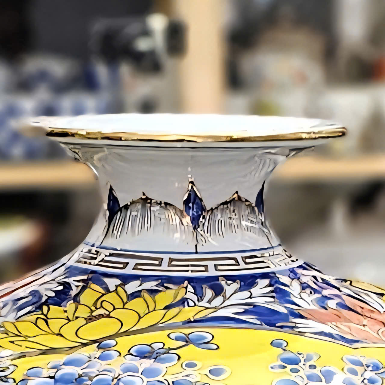Bình hút tài lộc H35 vẽ vàng 24k gốm sứ Bát Tràng cao cấp