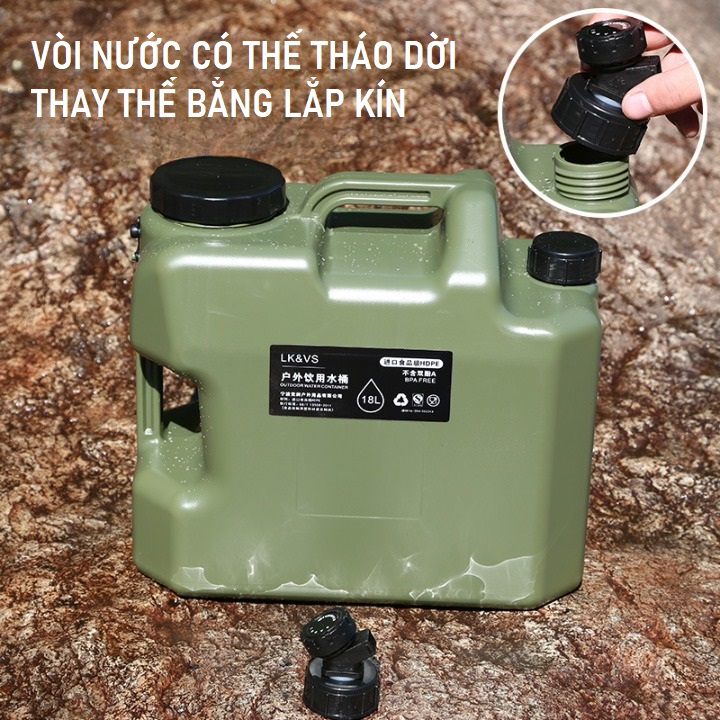 Bình đựng nước cắm trại 10L/18L/25L di động ngoài trời với nắp dự phòng nhỏ + ống nối dài + bàn chải