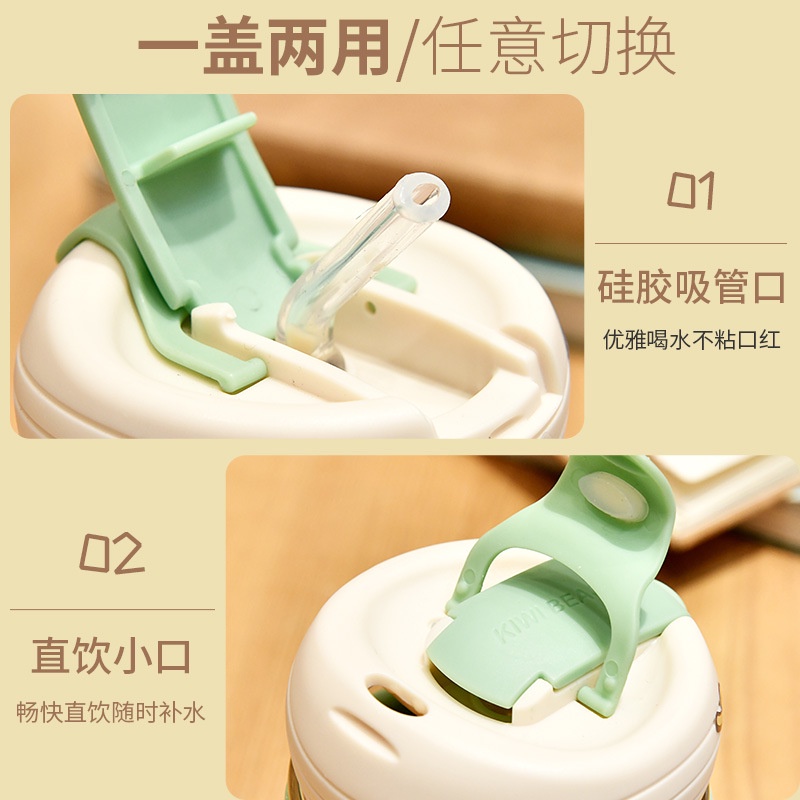 Mẹ & Bé > Đồ dùng ăn dặm cho bé > Đồ dùng cho bé > Ly, cốc cho bé || Bình nước cho bé đi học,cốc đựng nước cao cấp 350ml có quai đeo nắp bật ống hút mềm mại tặng stickcơ