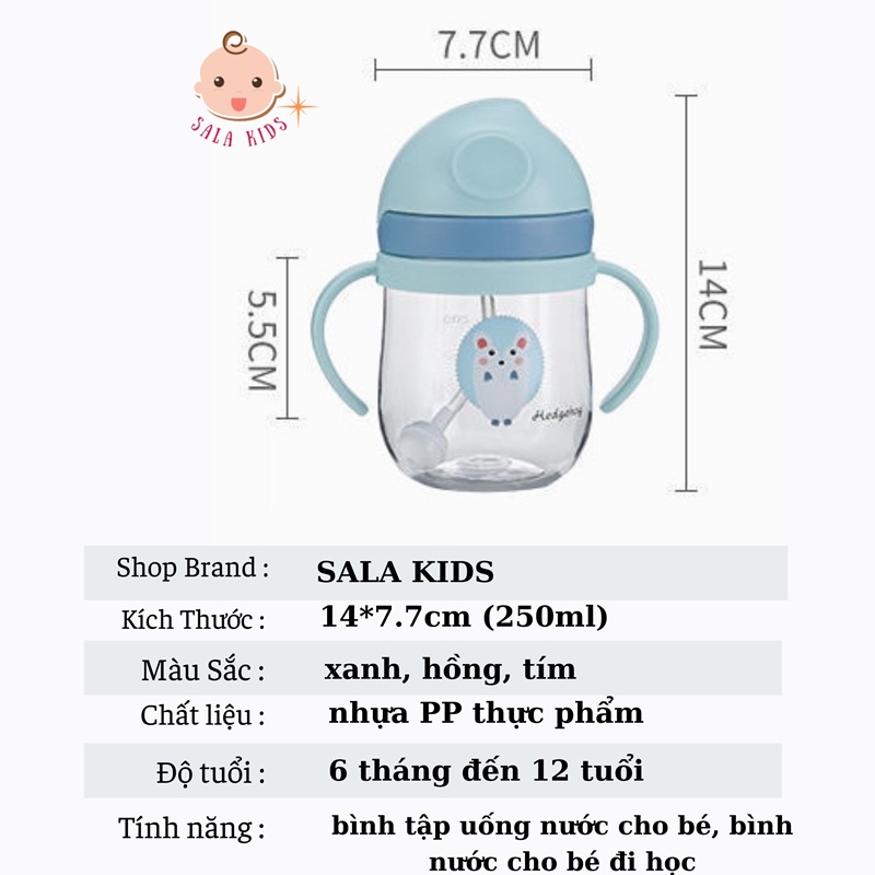 Giới thiệu Bình Nước Cho Bé Tập Uống Nước Có Ống Hút Cho Bé Chống Sặc Đi Học Mini Cute SALA KIDS AT05