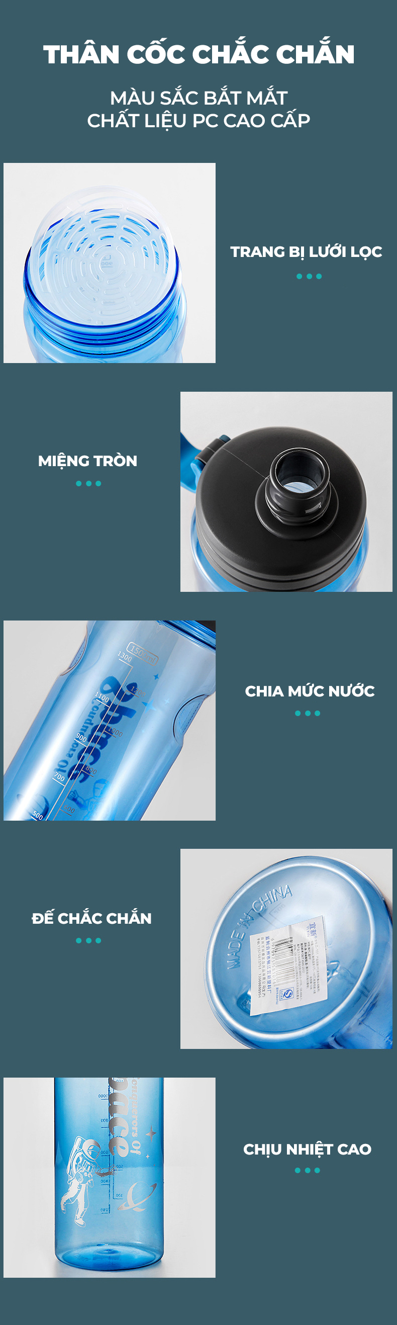 - Chất liệu: Thân bình làm từ nhựa PC, Nắp bình làm từ nhựa PP