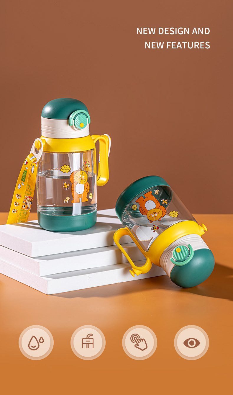 Bình Nước Nhựa Hình Hoạt Hình Dễ Thương Cho Bé AOLIKES TY907 - Dung Tích 500ml - Có Quai Đeo & Ống Hút