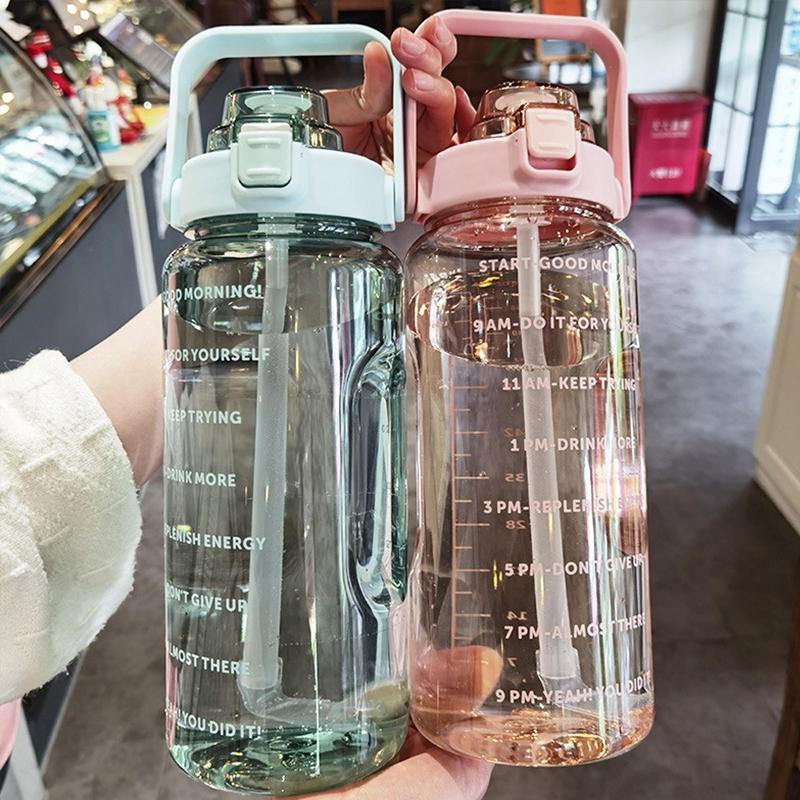 Giới thiệu Bình nước thể thao, Bình nước Tiktok 2 lít, bình nước 2l siêu dễ thương có vạch báo giờ uống nước